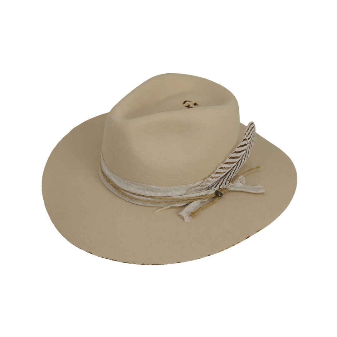 LIBRE, SALVAJE,ELEGANTE, FEDORA DE ALA ANCHA,INSPIRADO EN VASTAS LLANURAS Y ESPÍRITUS INDEPENDIENTES